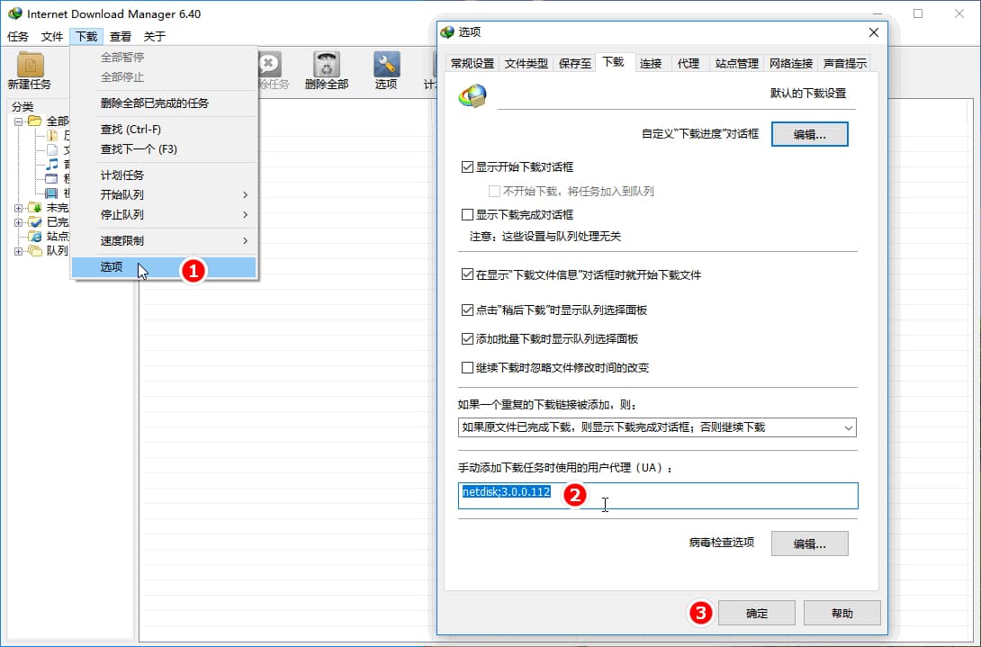 Windows:在IDM设置中,设置UA为 netdisk;PC